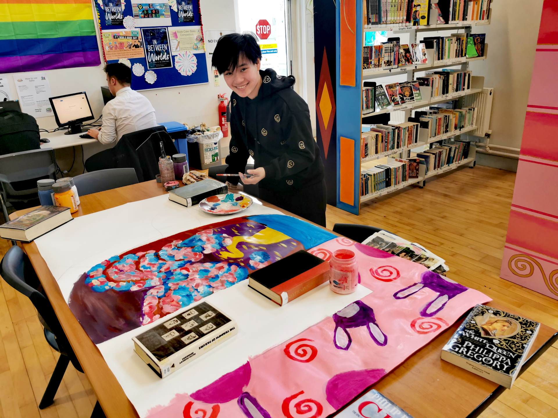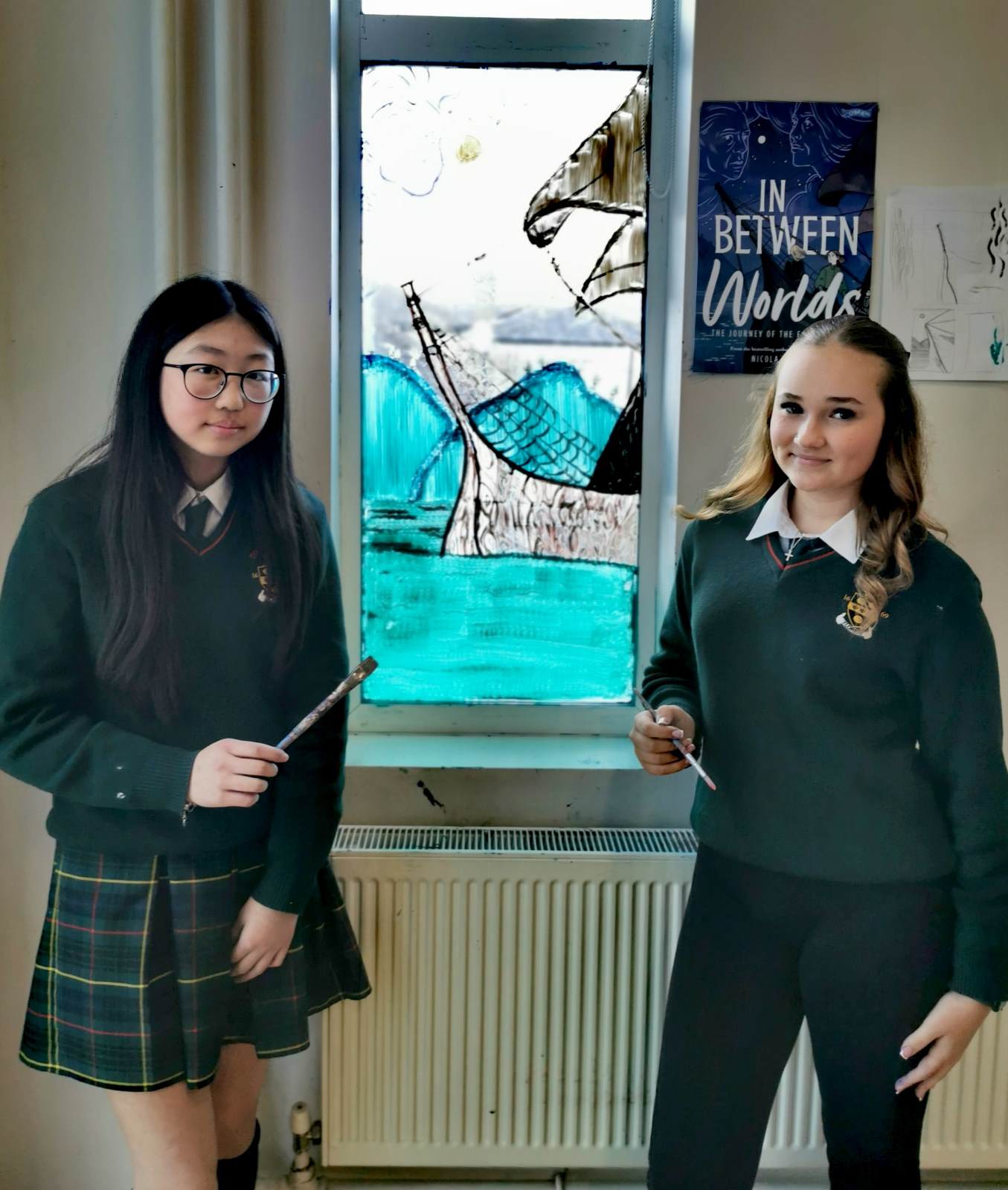 The 2025 Book Week was themed In Between Worlds, inspired by the title of local author Nicola Pierce's historical novel about the famine girls' journey to Australia. Students embraced the theme in the library window painting competition and decoration.